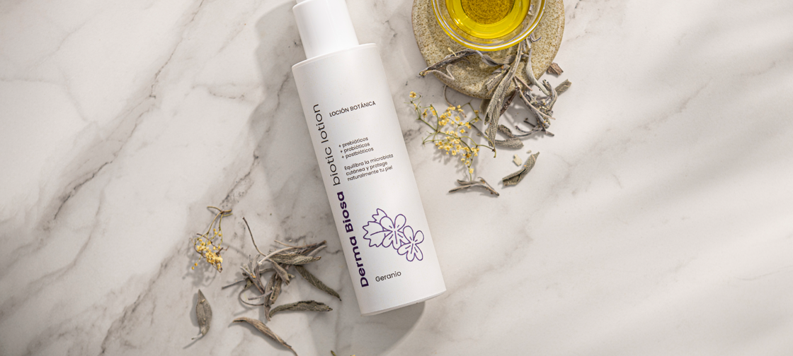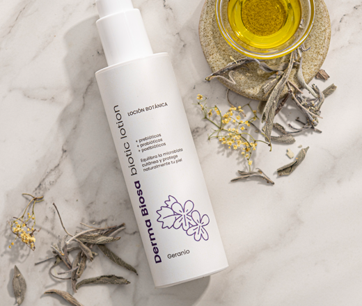 Derma Biosa es una loción biótica con pre, pro y postbióticos combinados con extractos de flores, hojas, frutos y raíces.