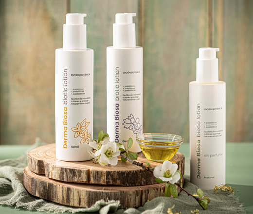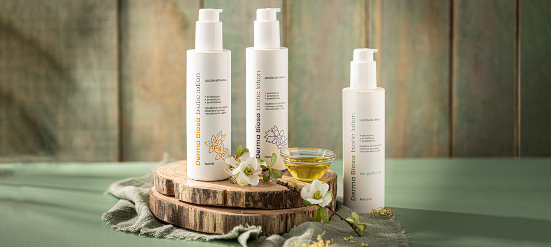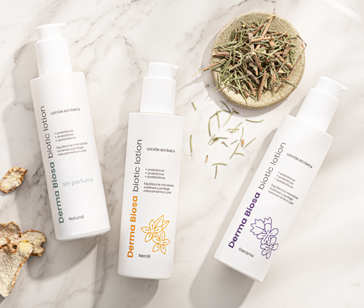 Derma Biosa es una loción biótica con pre, pro y postbióticos combinados con extractos de flores, hojas, frutos y raíces.
